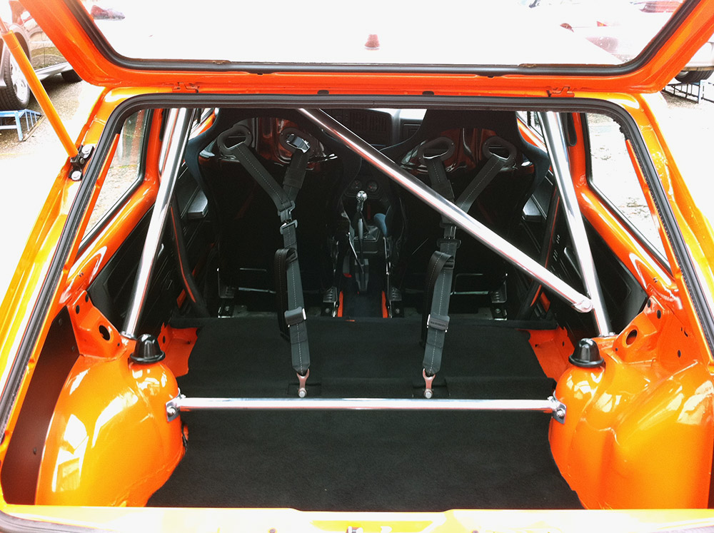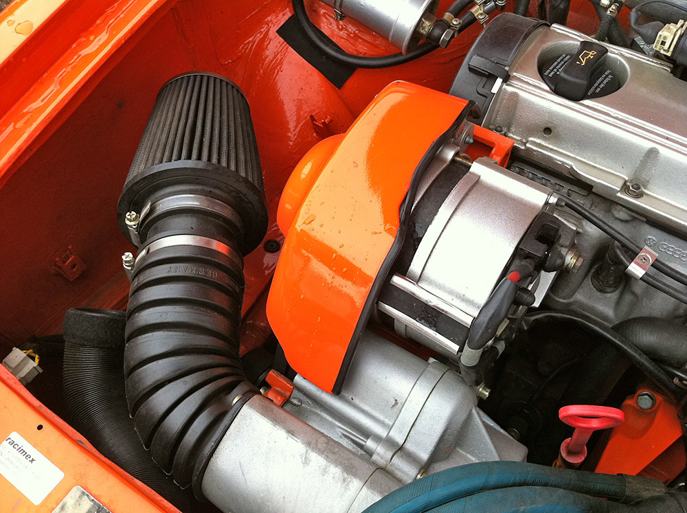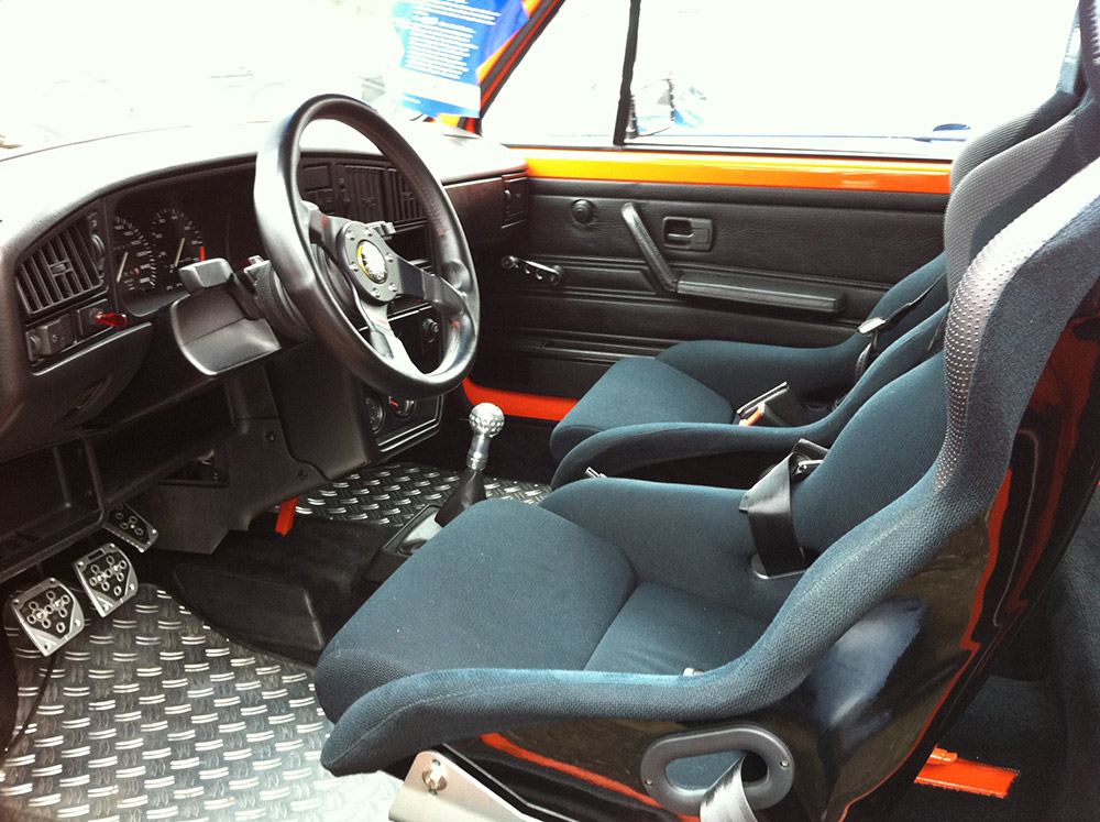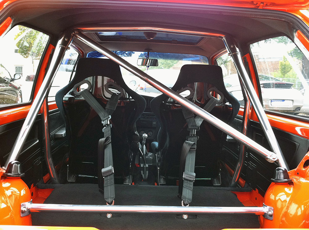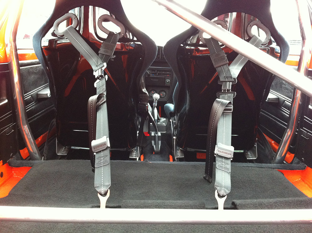 Спортивные кресла, ремни безопасности Schroth, каркас безопасности, диски Ronal Turbo 8х15, подвеска KW, модернизированная система охлаждения, спортивный впуск и выпуск.